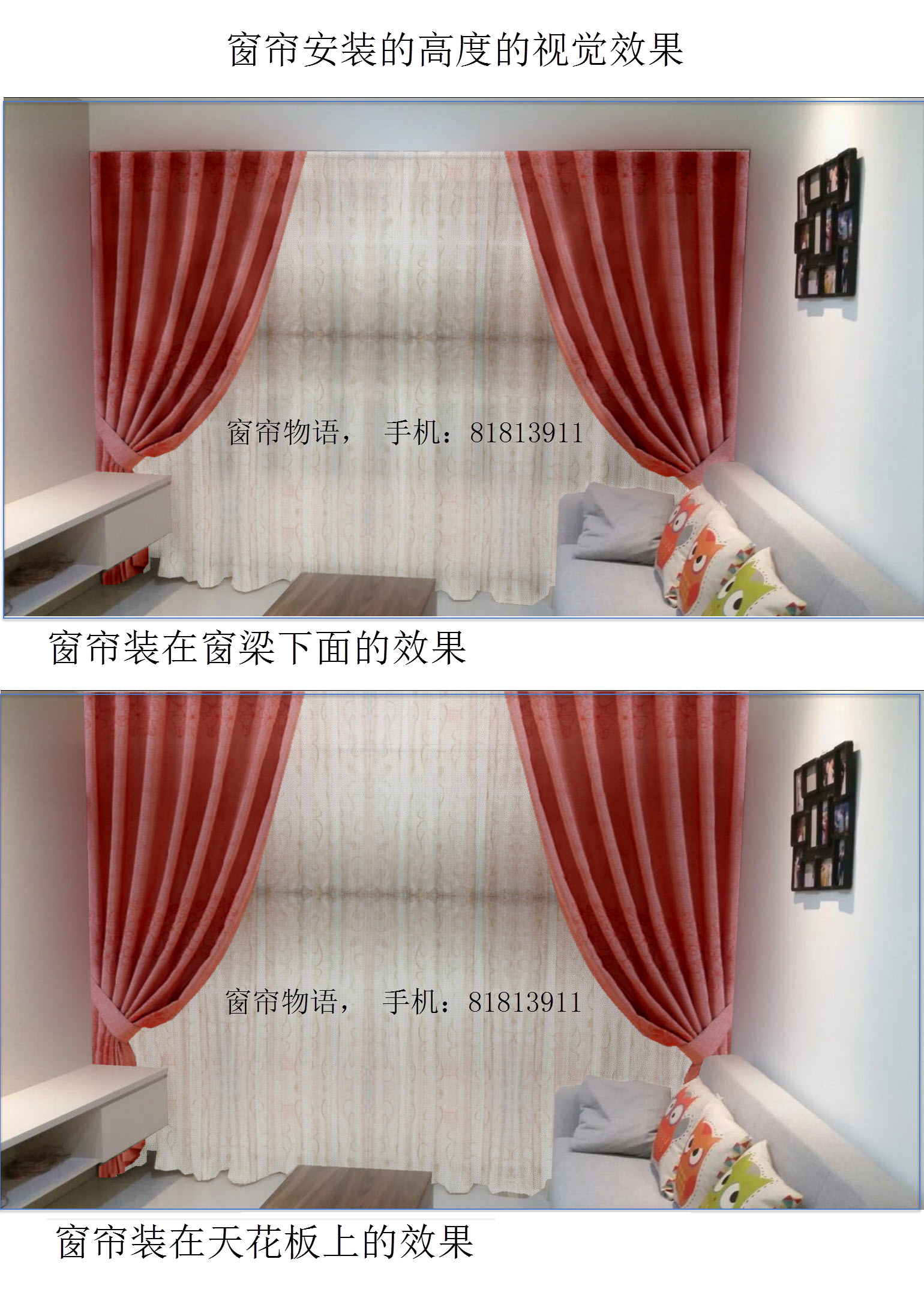 The owner decided to install curtain up to the ceiling, the whole living hall looks spaciuos. 屋主在采纳了我的建议后,决定把窗帘 装在天花板上,整个客厅一下子变得空旷起来。